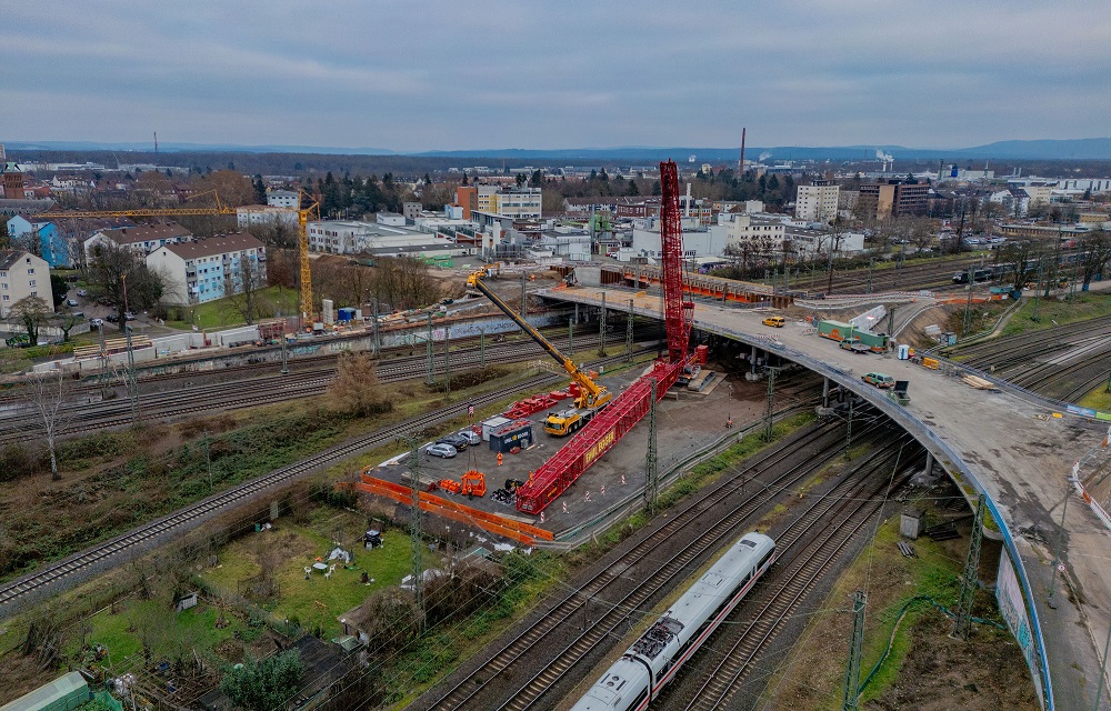 Nach Nord kommt Süd: Neue Fahrbahn-Basis für Hauptbahnhof-Brücke in Hanau